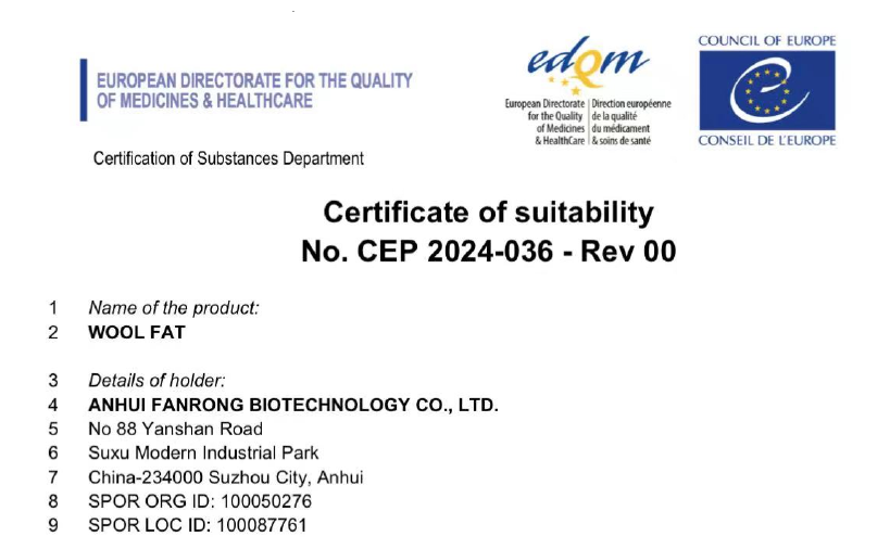 繁荣生物作为制药行业的羊毛脂供应商,25年来一直致力于供应全球市场高纯度的医药级羊毛脂,以其优异的品质广受赞誉。