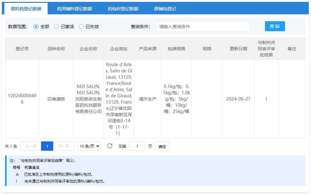 Approved Classic Projects of Registration of APIs, Excipients and Packaging Materials