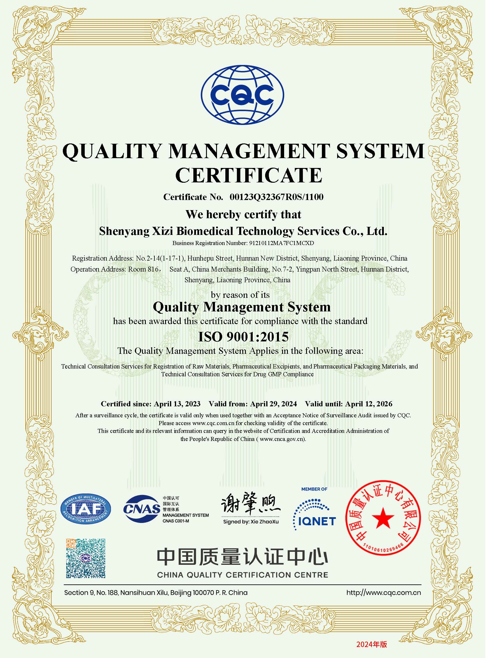 Through nearly a year of hard work and pioneering practice of all employees, Xizimed successfully passed the CQC ISO 9001 quality management system certification, providing a good guarantee for the quality of projects for new and old customers at home and abroad.